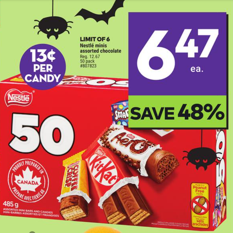 Grab some Halloween candy for the Trick-or-Treaters (or yourself), because Giant Tiger has a 50-Pack of Nestle Minis for just $6.47 in this week’s flyer!